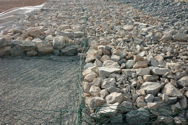 鉛絲石籠機械生產編織網孔均勻,速度快、效率高,是人工編織的50倍,能夠進行大規模生產。我廠生產的鉛絲石籠采用國內外先進機器設備編織而成的雙絞合六邊形金屬網,鋼絲的直徑可達2.00M-4.00MM。為提高網箱的結構強度,每個網箱被平均分為約1M的間隔做一個隔片,而且在每片鉛絲石籠網片的編織過程中,邊絲的直徑要比絞合的徑緯雙絲加粗一個規格的絲號,以提高網片的牢固性。所有設計均符合國家標準,質量無可挑剔。
