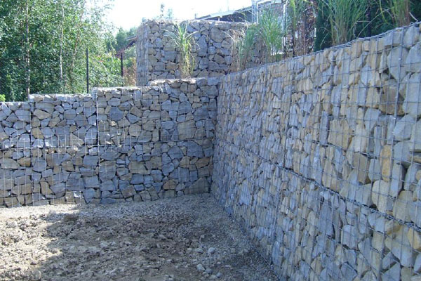 現代的鉛絲石籠使用鍍鋅鐵絲編織成的網狀矩型箱體,在箱內裝填塊石或天然鵝卵石,用于各類擋水工程和防沖刷建筑物。
