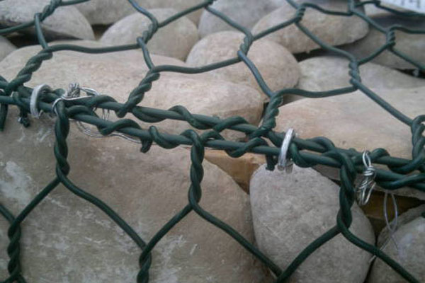 五擰石籠網(wǎng)由六角網(wǎng)編織而成,它有牢固的結(jié)構,廣泛用于建筑中來加強地板和屋頂?shù)膹姸龋糜趦和賵龅膰鷫Γ灿脕碇谱骷仪莸幕\子。石籠系由高鍍鋅鐵線被覆PVC機編扭繞成,再予連續(xù)性聯(lián)結(jié)成一柔韌性結(jié)構體,并在指定位置安放、裝填石料并錨接穩(wěn)妥。五擰石籠網(wǎng)采用機械編織可節(jié)省大量工時,組立簡單迅速。